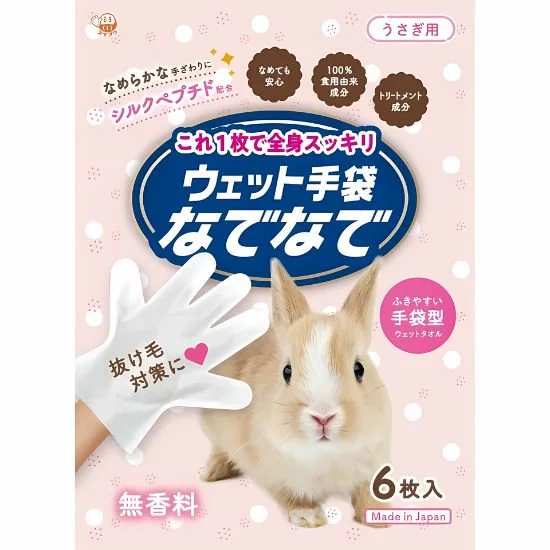 うさぎとの触れ合いを楽しみながら、お手入れをスムーズに行える「ウェット手袋なでなで」。安全性の高い成分で安心して使えます。愛らしいペットの健康を守るために、ぜひこちらの商品ページをご覧ください!